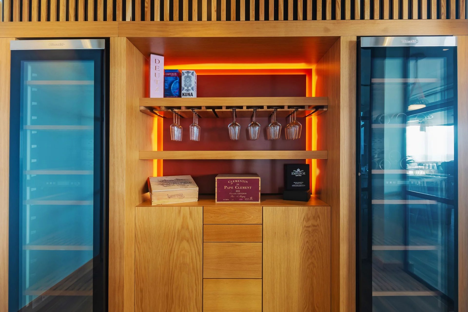 Finitions luxueuses : pierre naturelle, bois noble, verre et textures raffinées