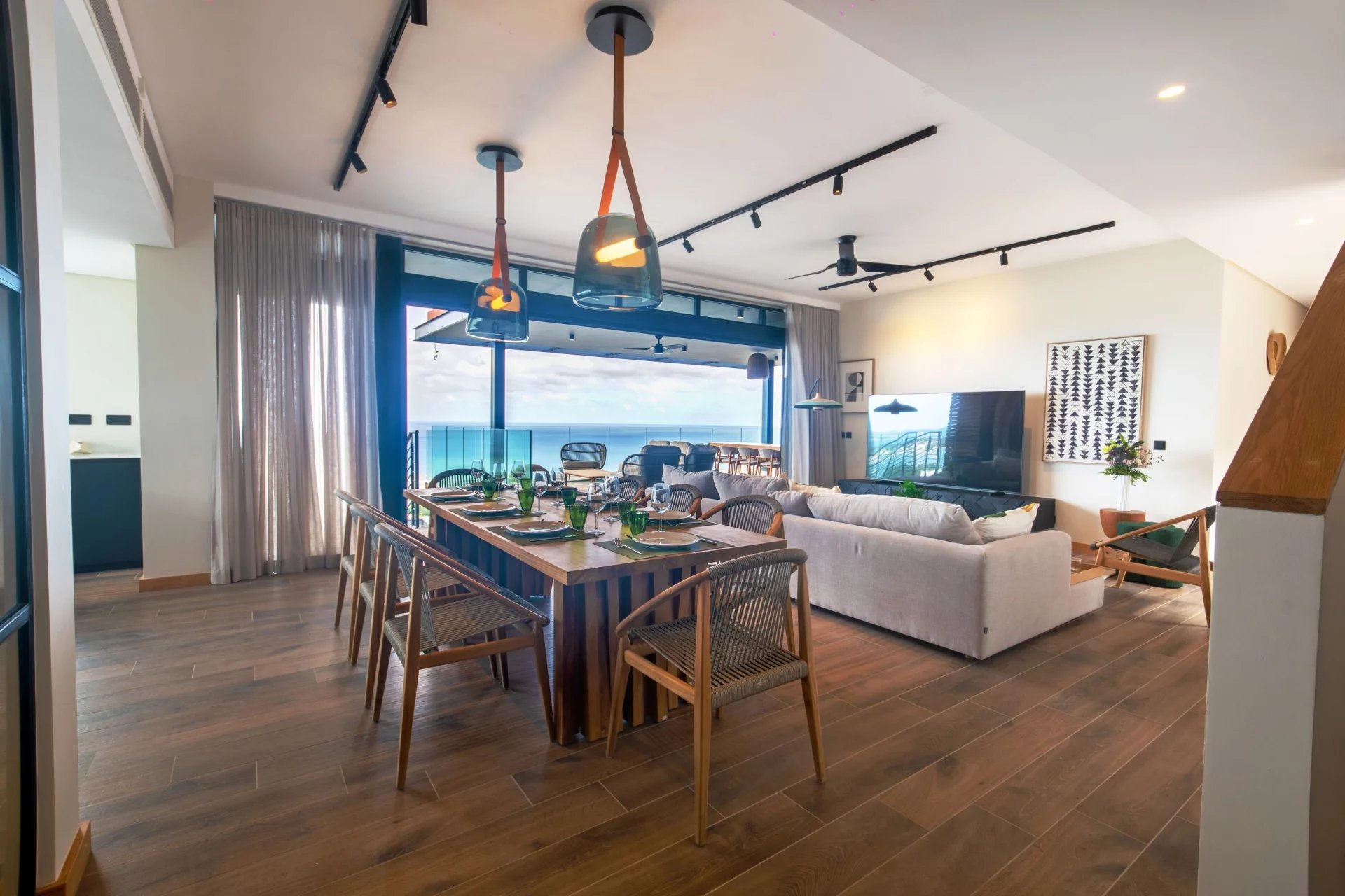 Espaces de vie vastes et lumineux, ouverts sur la terrasse et la mer