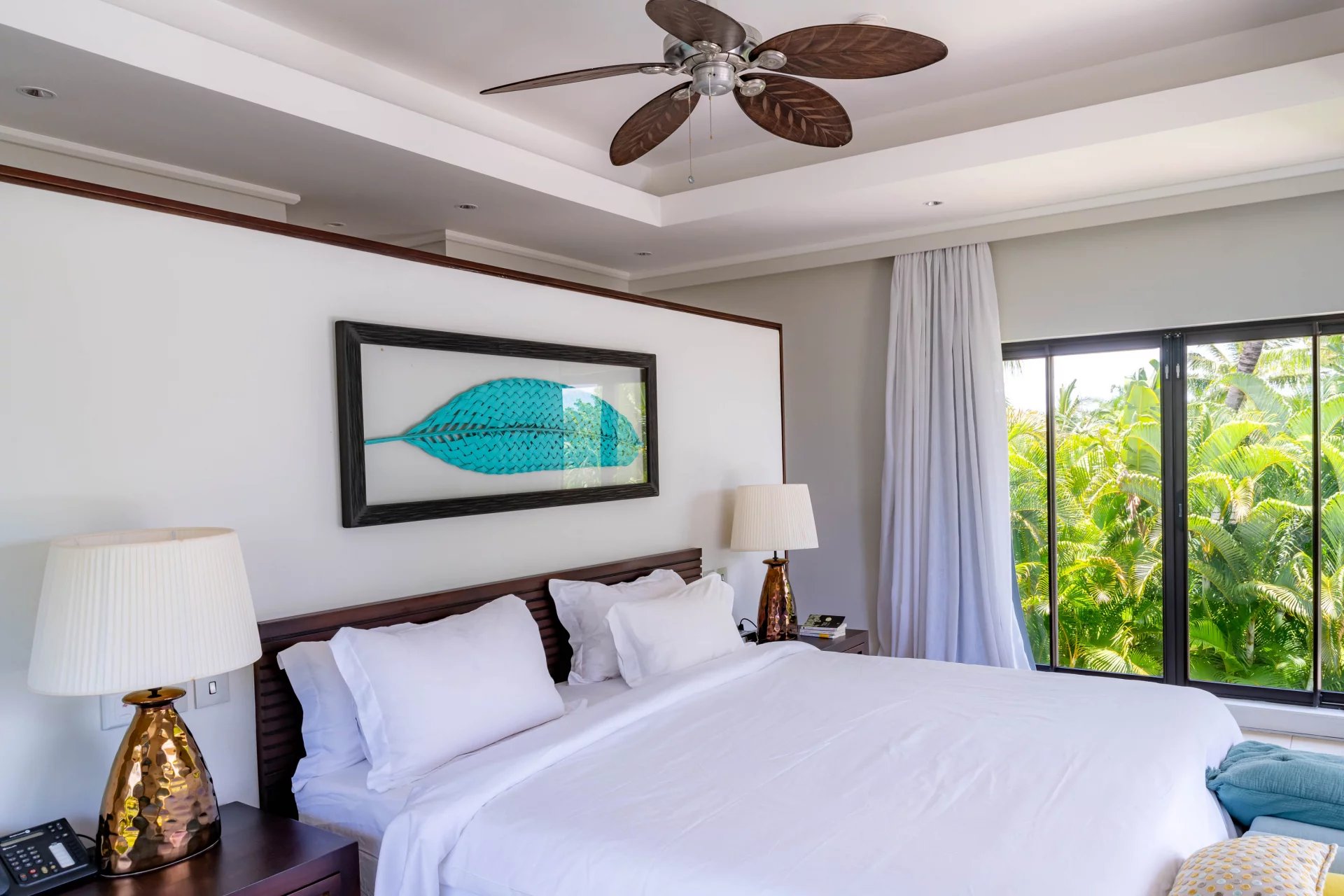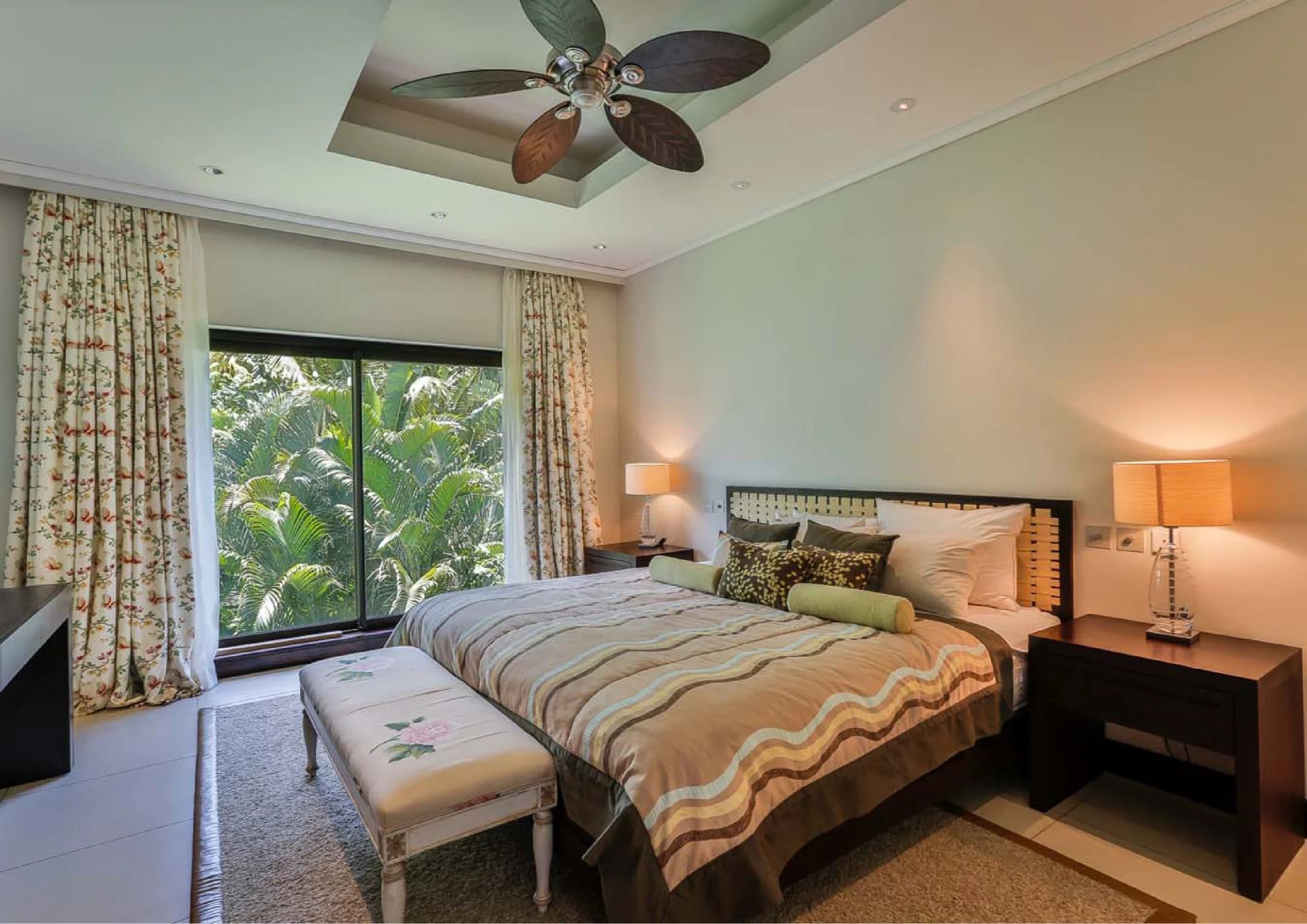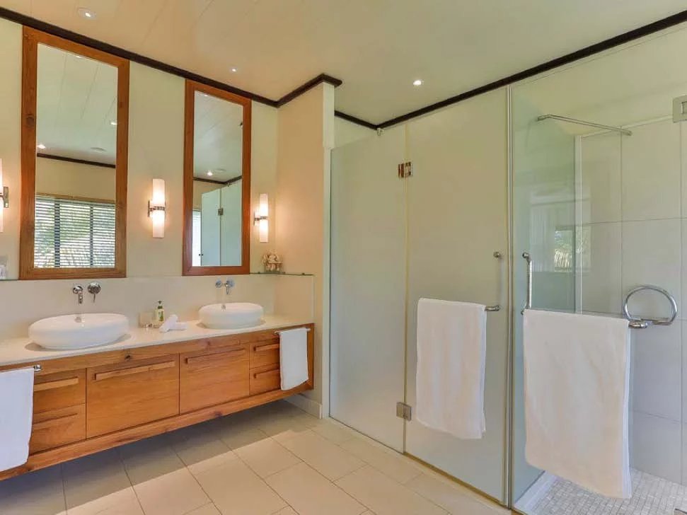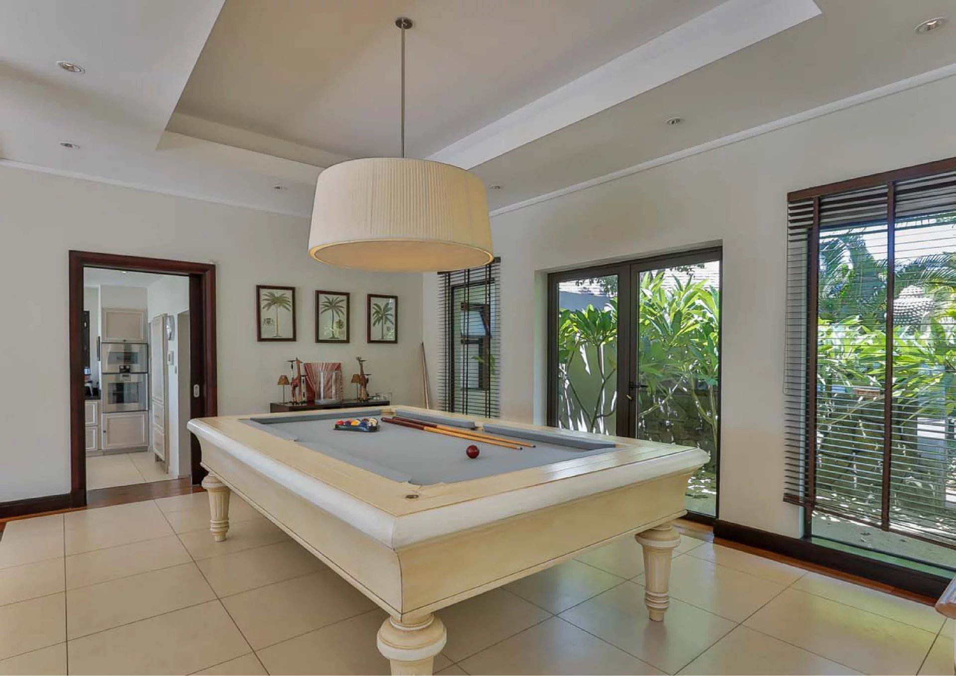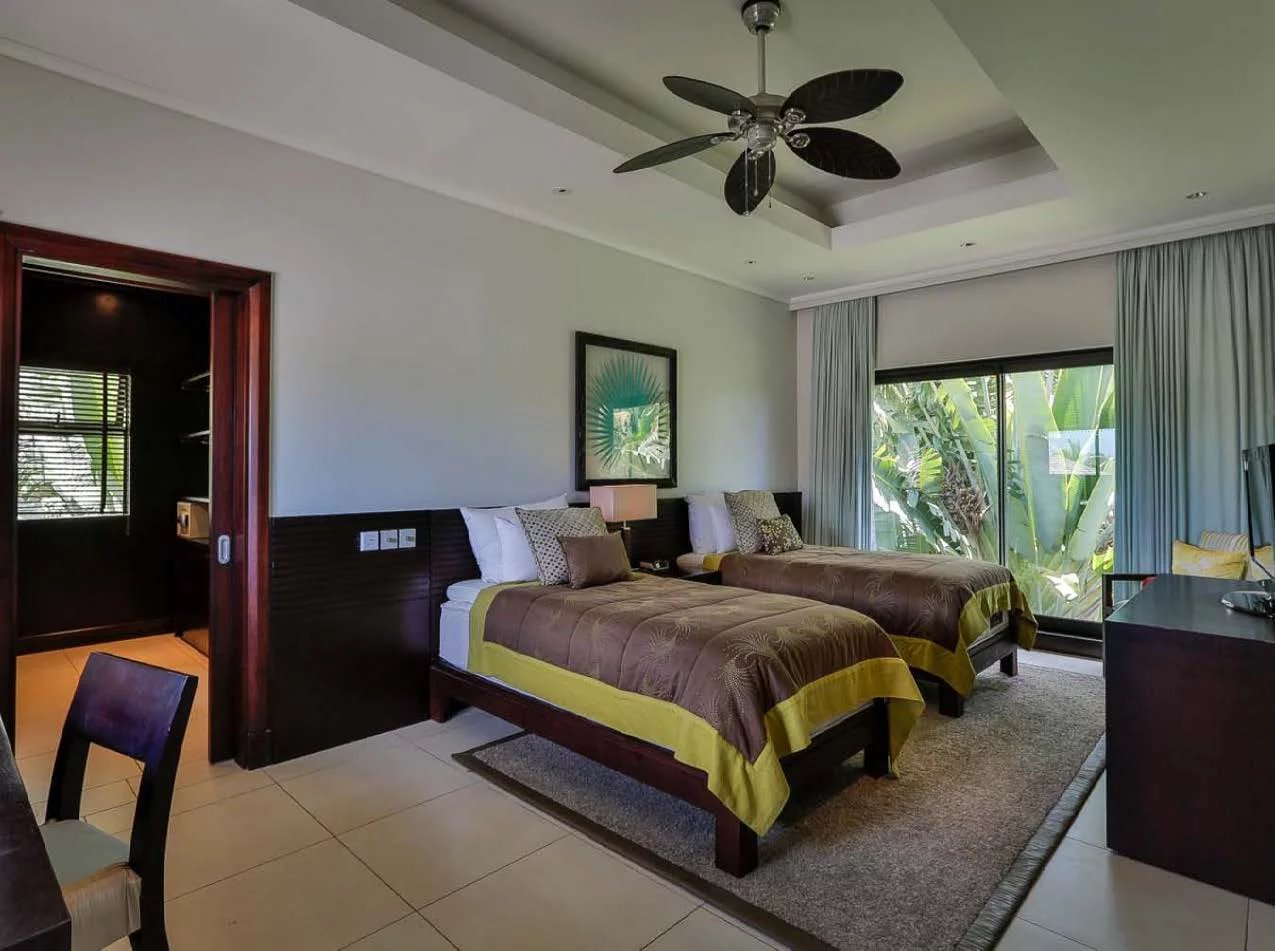 Les vastes espaces de réception sont baignés de lumière, tandis que l’architecture contemporaine privilégie la fluidité et les larges ouvertures. Celles-ci prolongent naturellement les pièces de vie vers l’extérieur, où la terrasse, la piscine et le jardin paysager créent un environnement intime et apaisant, parfaitement adapté au climat mauricien.
